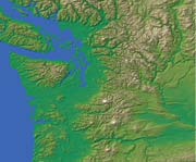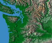 The scale of the relief map images at 72 dpi is 1:280,000. At 300 dpi this would be equivalent to approximately 1:1,000,000. The base relief images are generated from 100 meter USGS DEM data presenting exactly one pixel per 100 meter of terrain. For purpose of estimating image sizes and coverage, an area 100 miles by 100 miles would approximate 1,800 X 1,800 pixels. For print purposes at 300 dpi this would give a 6 X 6 inch image, at 150 dpi a 12 X 12 image, and at screen resolution say 75 dpi, an image would be approx 24 X 24 inches. In most cases the quality of the relief image is sufficiently high to be resampled at 200% thereby doubling the image size.