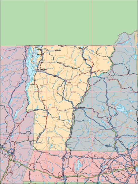 ![]() Detail view of EPS Vector Map of Vermont - the land fill color is switched on. The EPS Vector map for Vermont has 27 layers which may be individually modified or removed. Select the Vector only EPS map of Vermont option to download this style map. |